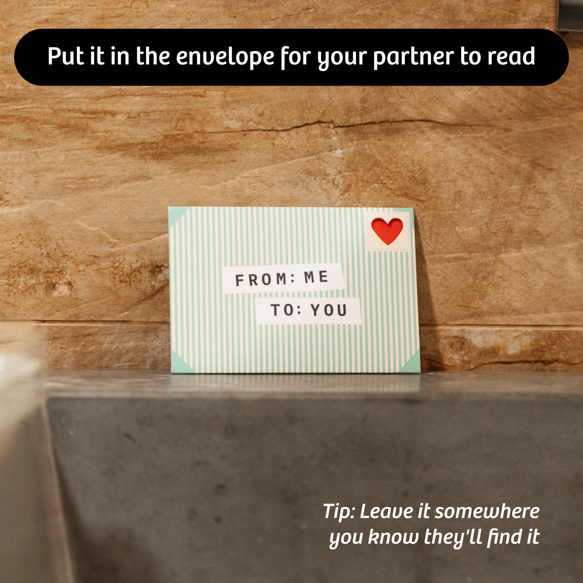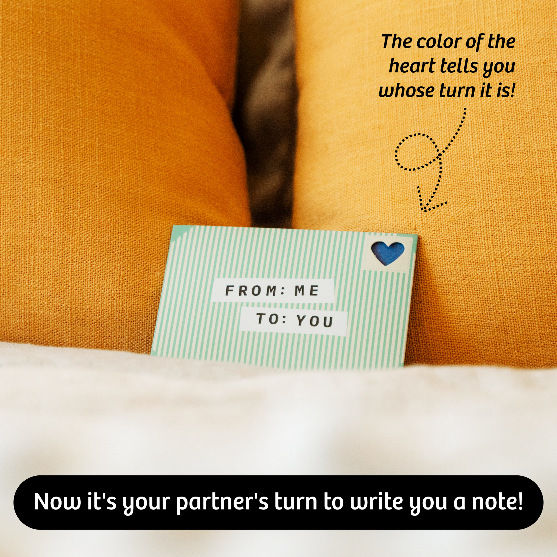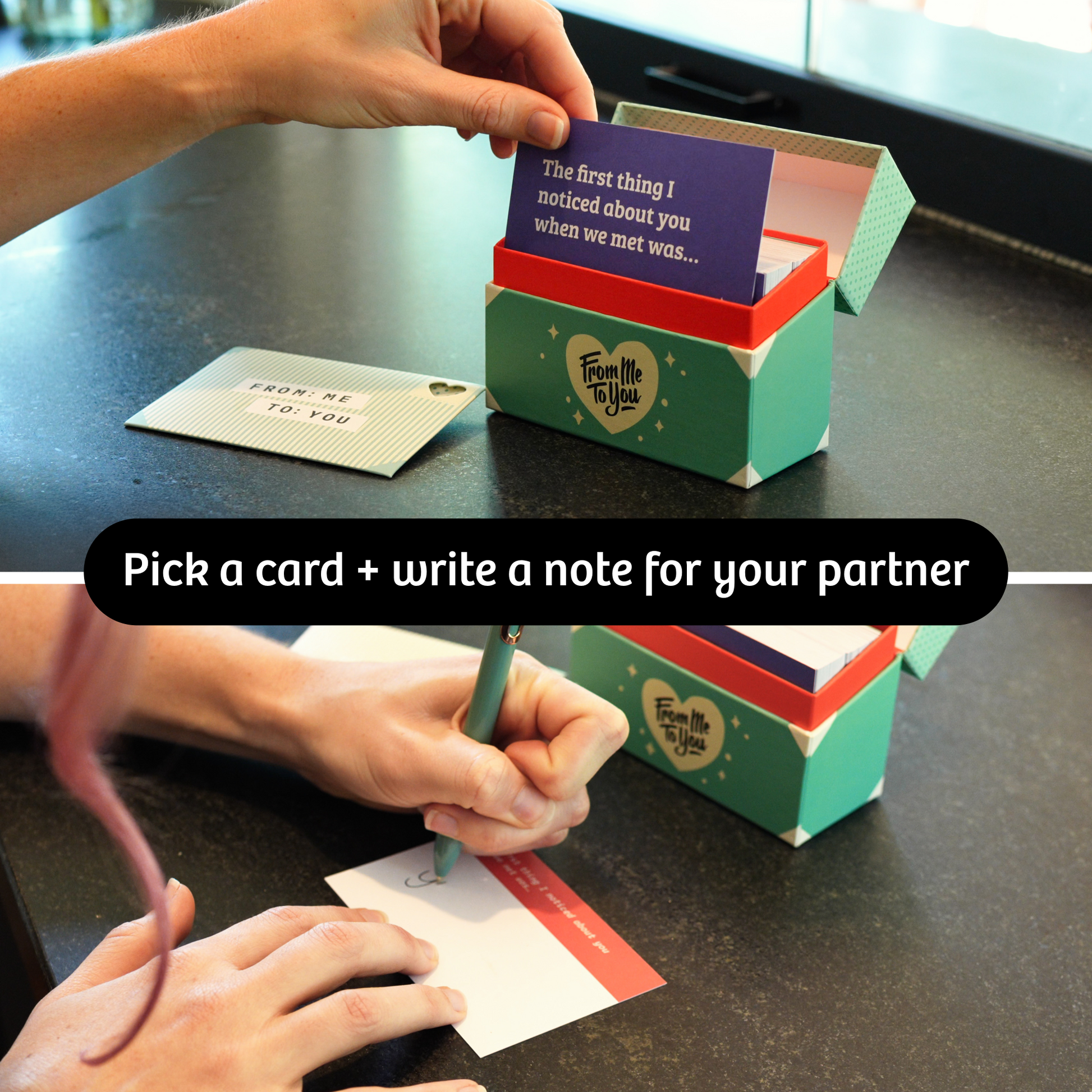 Go back to the basics and put pen to paper to leave little love notes for your partner to find and fall deeper in love every day. From Me To You is a bonding experience that is lighthearted and easy. A simple, fun way to show affection in a world where everything else feels busy.